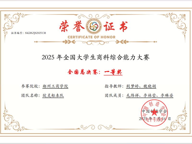 我校122cc太阳成集团代表队在2025年全国大学生商科综合能力大赛中荣获佳绩