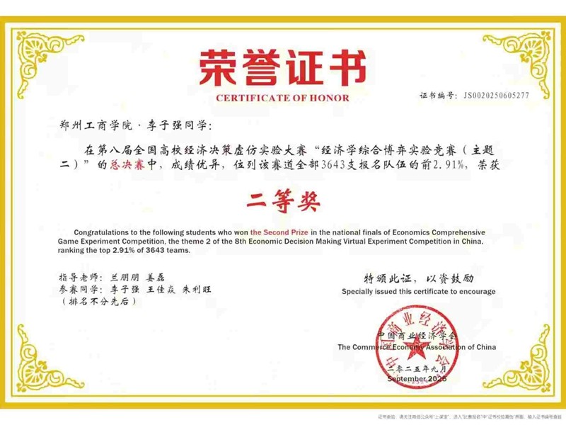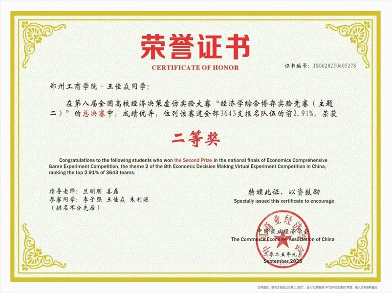 9月20日,第八届全国高校经济决策虚仿实验大赛圆满落幕。此次赛事中,我校122cc太阳成集团凭借卓越的专业实力与紧密的团队协作,最终荣获二等奖和三等奖各一项。