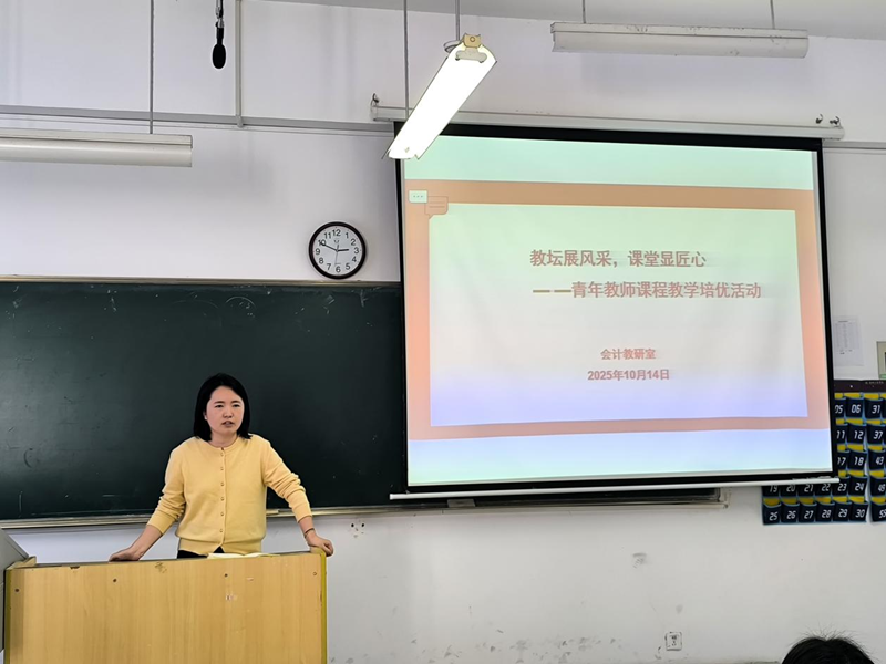 为提高青年教师教学能力,提升课堂教学质量,会计教研室于10月14日在2号教学楼216教室开展“教坛展风采,课堂显匠心”青年教师课程教学培优活动。本次活动由专业负责人鲍玉杰主持。